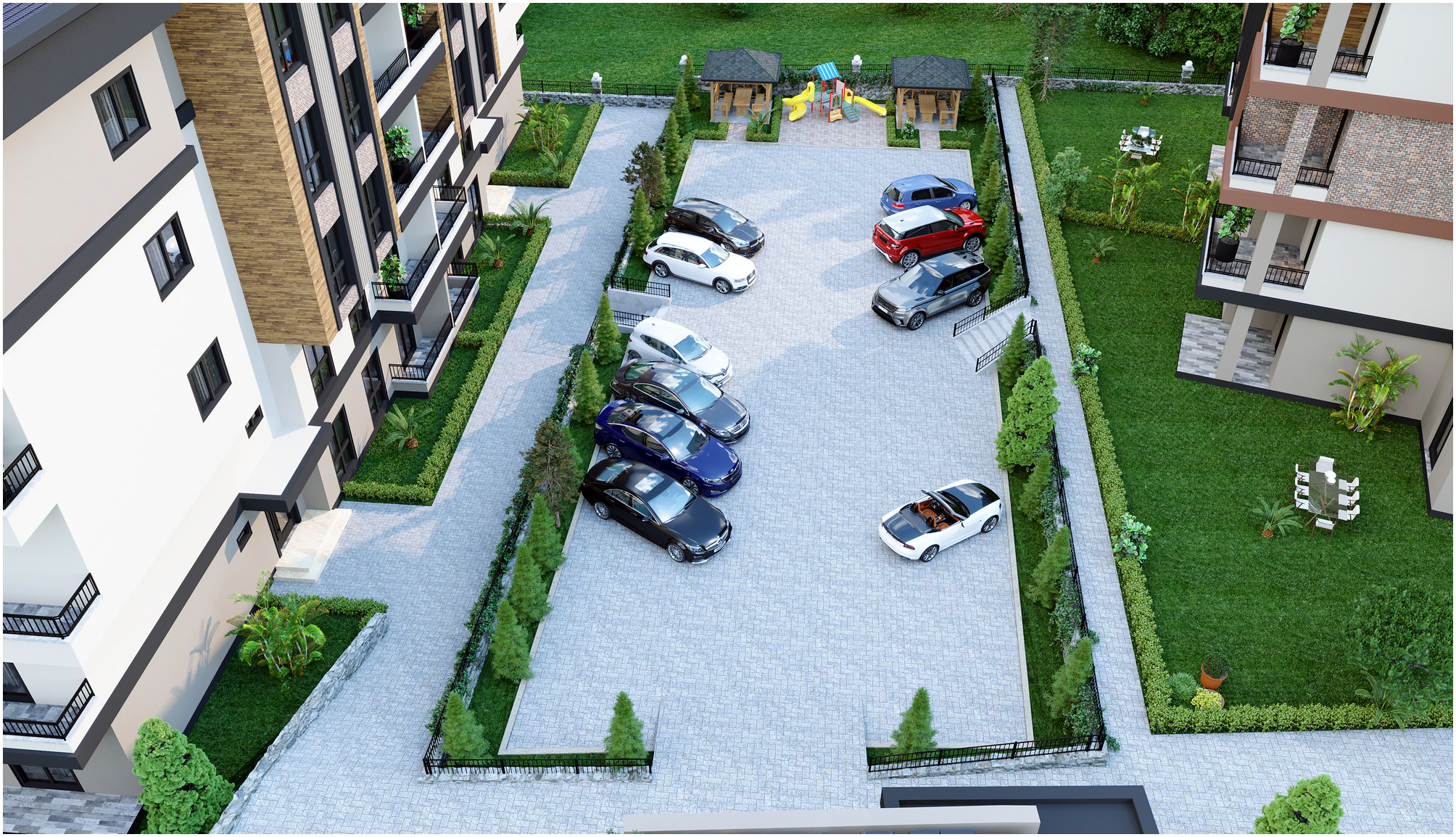 Bahçe dublekslerin özenle tasarlanmış müstakil bahçesi,